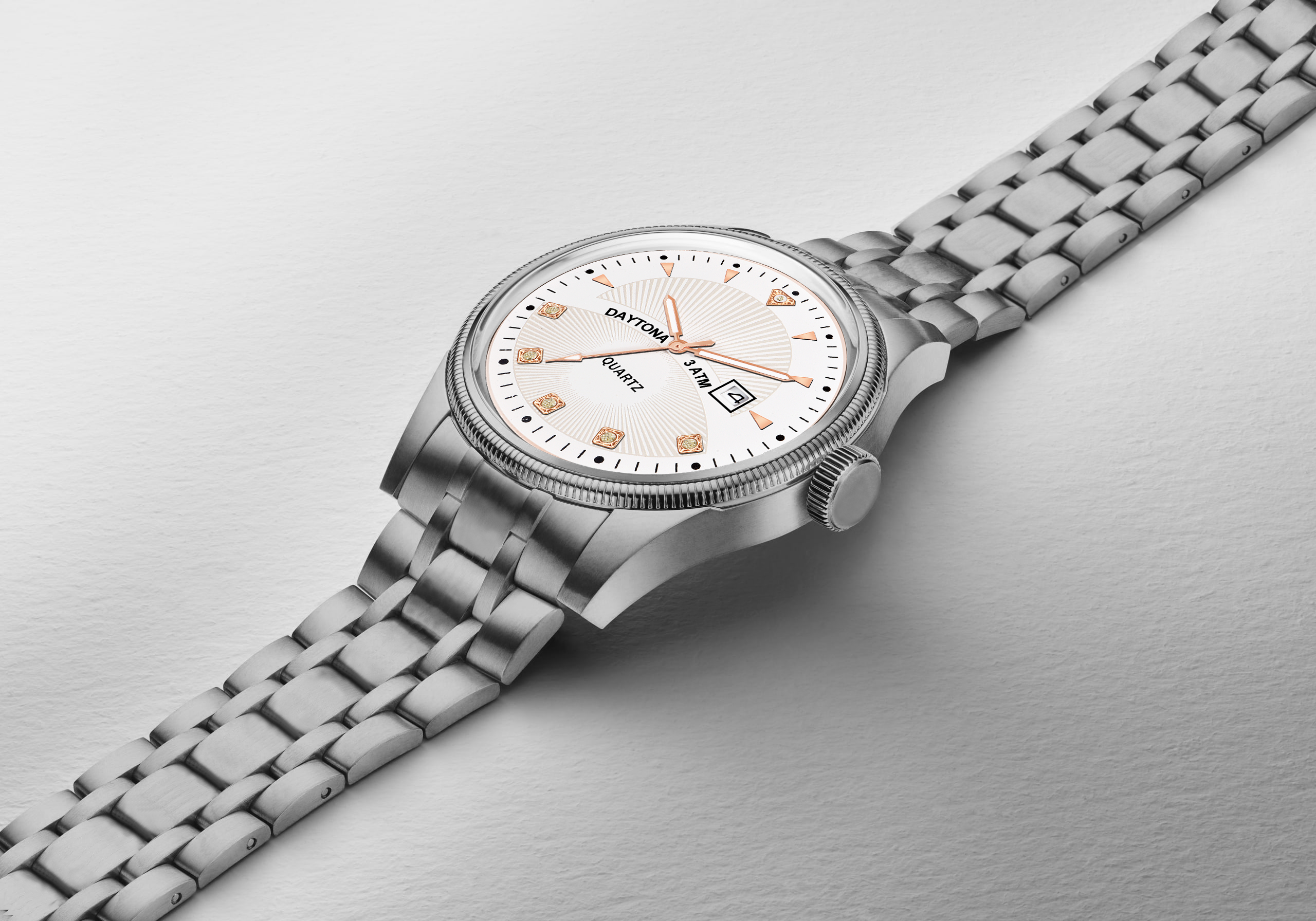 Daytona White & Silver Men's Analog Watch with Gem & Rose Gold Accents